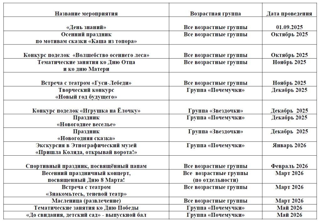 Праздники, развлечения и конкурсы на 2025-2026 учебный год